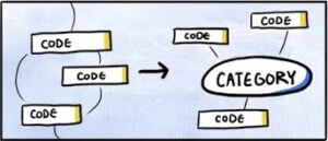 Qualitative data analysis software often represents these categories as nested codes, visually demonstrating the hierarchy and interconnectedness of the concepts.