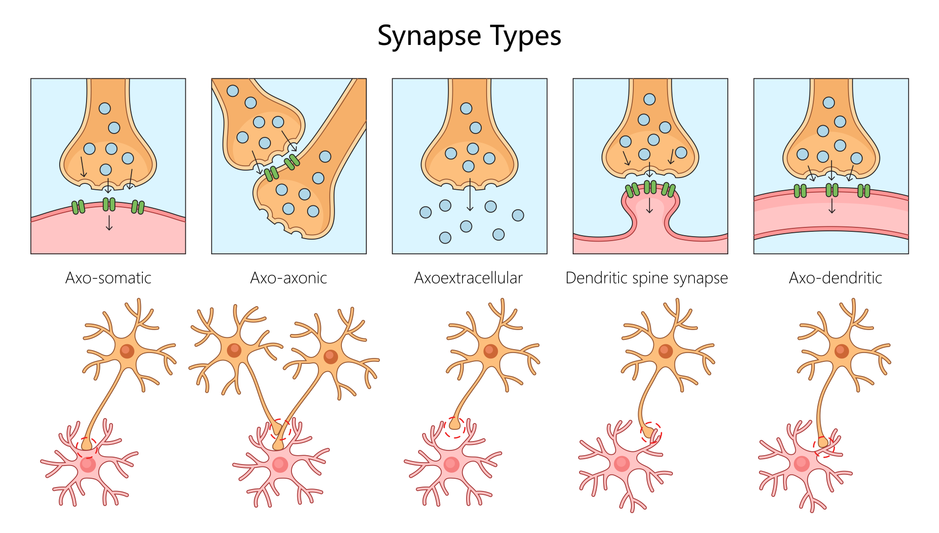 There are two types of synapses: chemical and electrical.